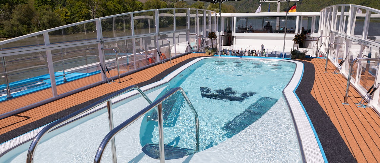 Slapp av med en beroligende massasje eller ta en svømmetur i bassenget med egen svømmebar mens skipet passerer flere hundre år gamle slott, sjarmerende landsbyer og annen storslått natur.