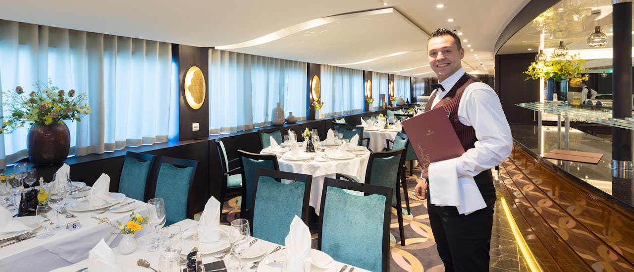 Nyt deilig mat på en rekke spisesteder, som hovedrestauranten og The Chef's Table. Du kan også bestille deilige tapas mellom måltidene i Main Lounge.