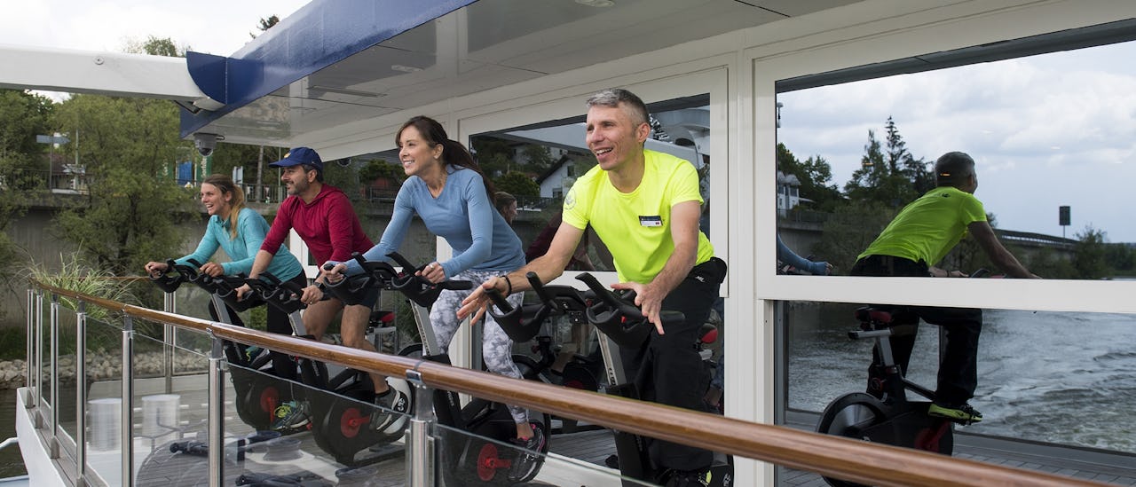 Slapp av med en beroligende massasje eller ta en svømmetur i bassenget med egen bassengbar mens skipet passerer flere hundre år gamle slott, sjarmerende landsbyer og annen storslått natur.