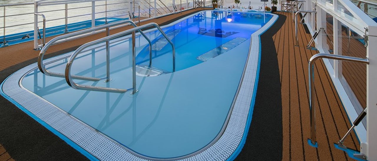 Slapp av med en beroligende massasje eller ta en svømmetur i bassenget med egen bassengbar mens skipet passerer flere hundre år gamle slott, sjarmerende landsbyer og annen storslått natur.