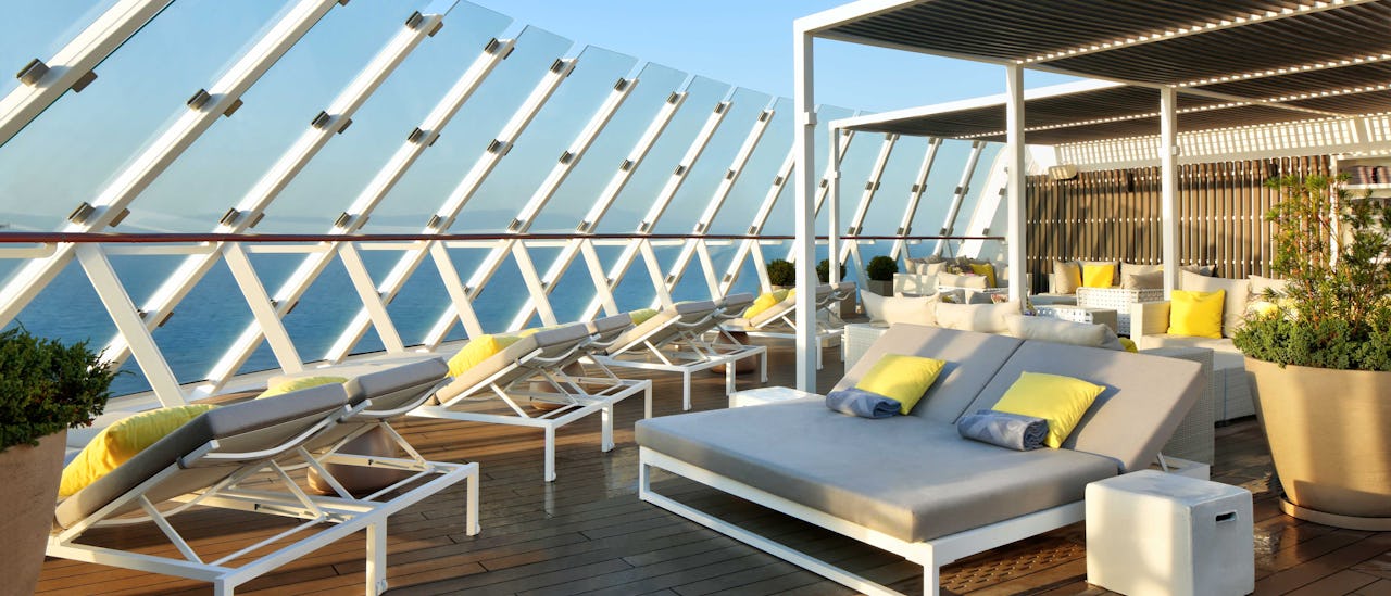 Len deg tilbake på "Magic Carpet" – en bevegelig glassveranda som flytter seg mellom dekk, utforsk matopplevelser og bli omfavnet av en atmosfære som er skapet av verdens ledende interiørdesignere. Celebrity Apex er et lekkert, moderne og avslappet flytende resort som tar moderne luksus til et nytt nivå. Perfekt for par!