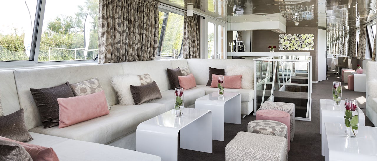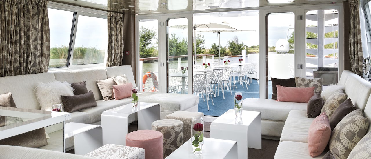 Salongen er smakfullt innredet og tilbyr panoramautsikt. Cocktailer og spill, dans og andre former for underholdning skjer her.