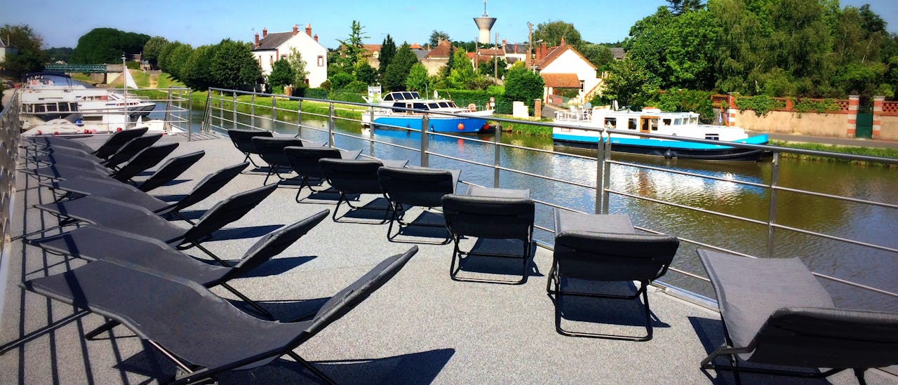 Slapp av og nyt utsikten over det storslåtte landskapet på soldekket hvor det er stoler og fluktstoler.