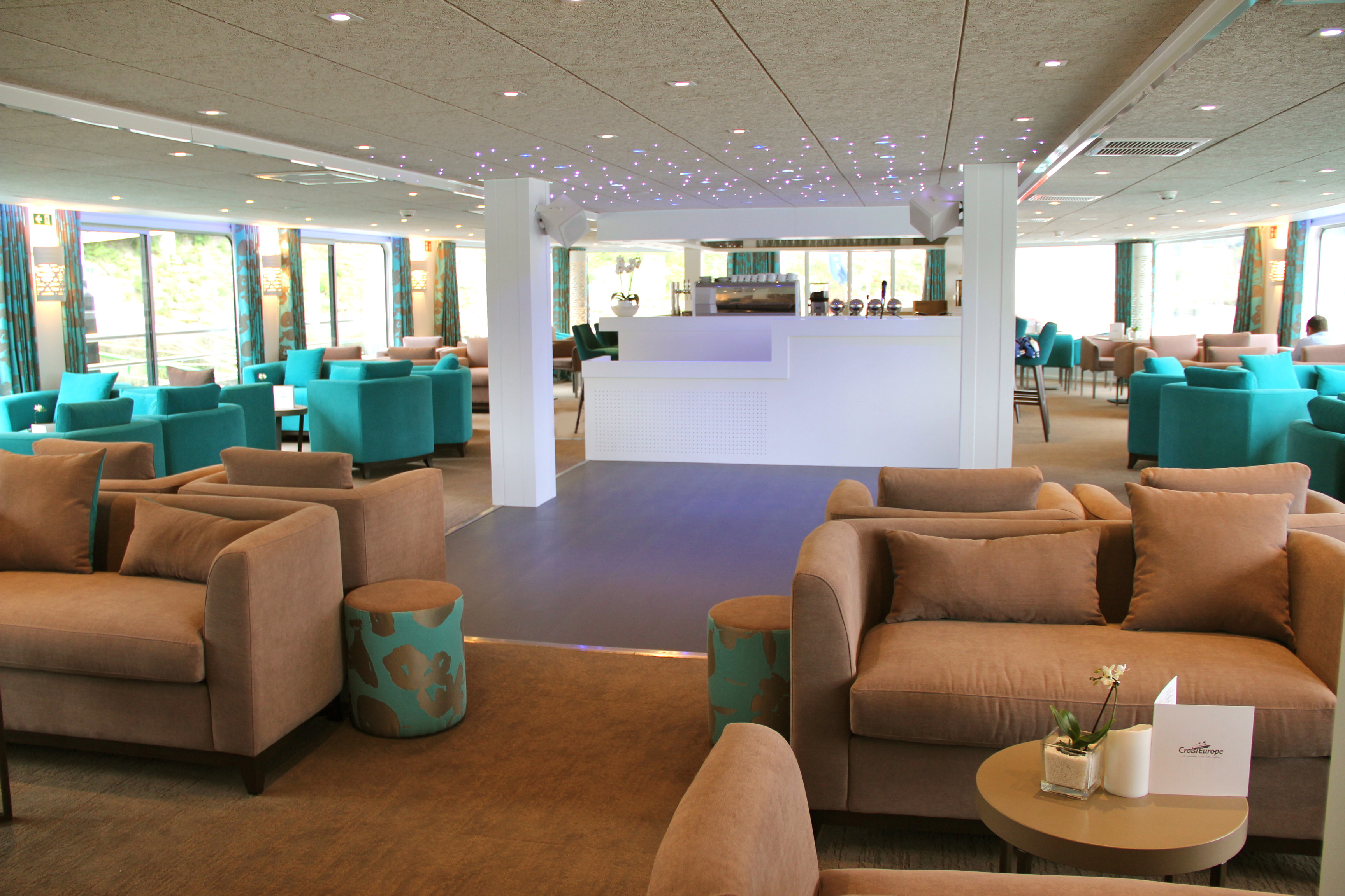 Salongen smakfullt innredet, ligger på forsiden av skipet og tilbyr panoramautsikt. Cocktailer og spill, dans og andre former for underholdning skjer her.