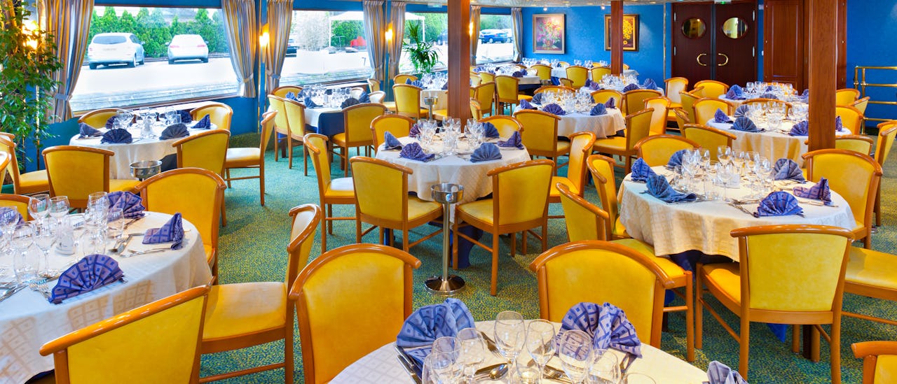 Hovedrestauranten ligger på hoveddekket og er der alle måltider serveres. Den har plass til alle gjester ved bord som varierer i størrelse med panoramautsikt. Atmosfæren er uformell, men elegant.