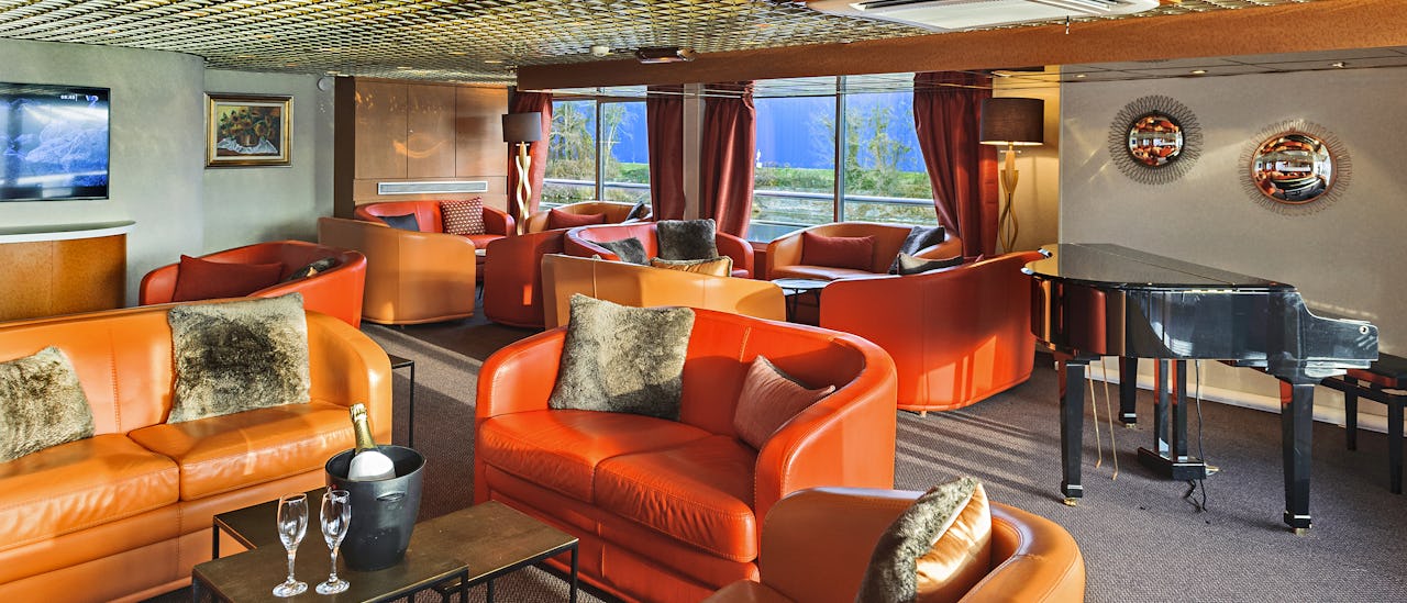 Salongen er smakfullt innredet, ligger på forsiden av skipet og tilbyr panoramautsikt. Cocktailer og spill, dans og andre former for underholdning skjer her.