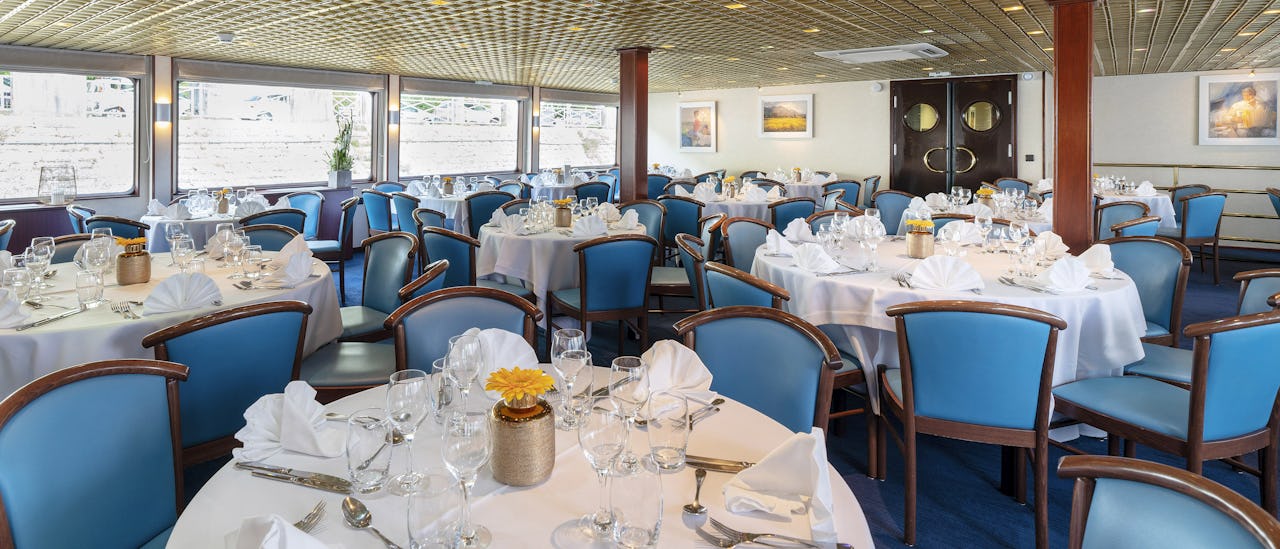 Restauranten ligger på øvre dekk og er der alle måltider serveres under cruiset. Atmosfæren er uformell, men elegant.