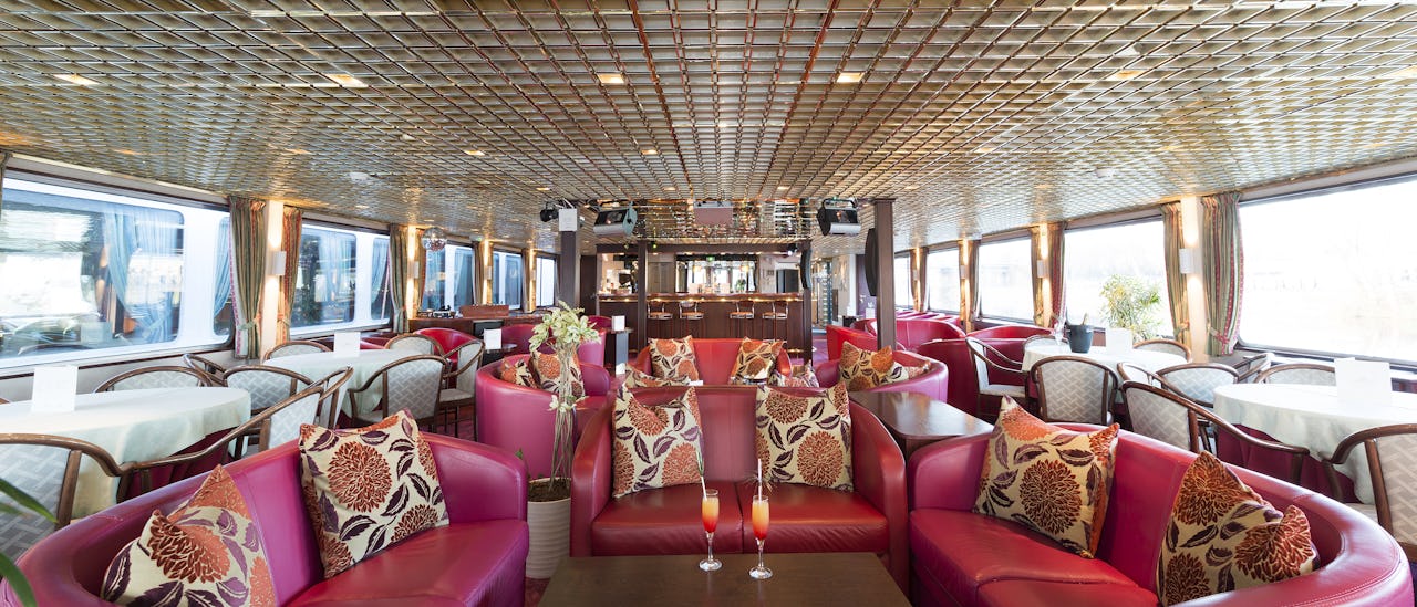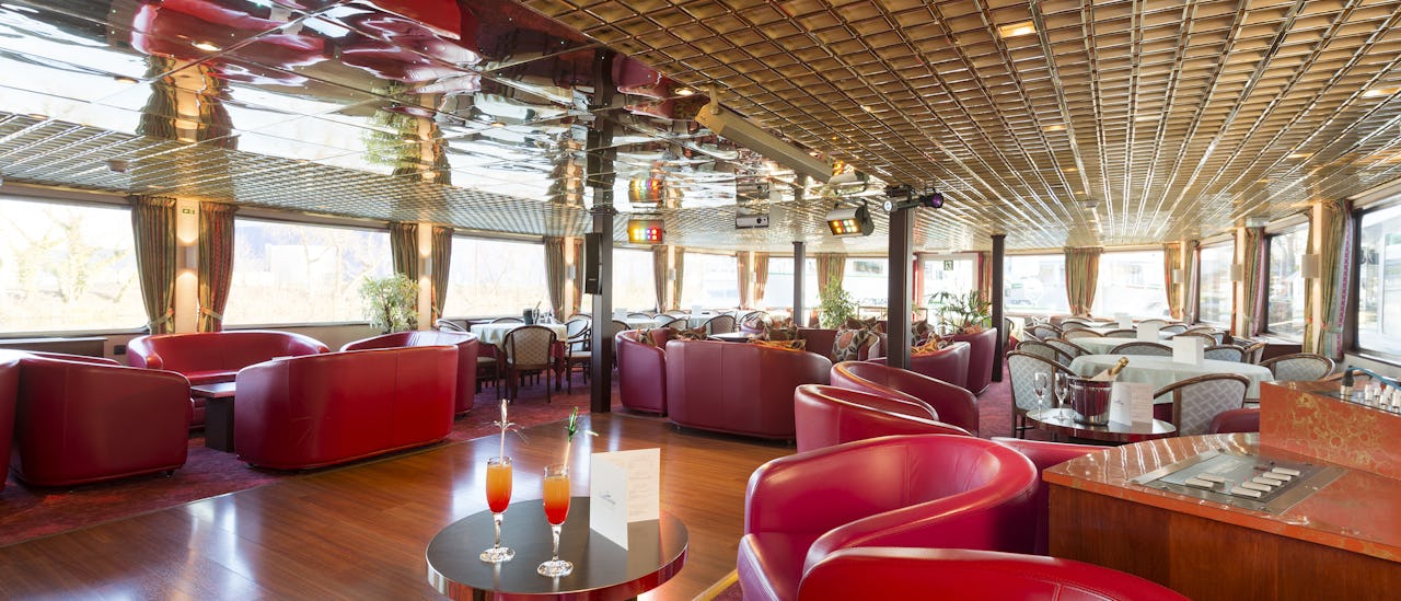 Salongen smakfullt innredet, ligger på forsiden av skipet og tilbyr panoramautsikt. Cocktailer og spill, dans og andre former for underholdning skjer her.