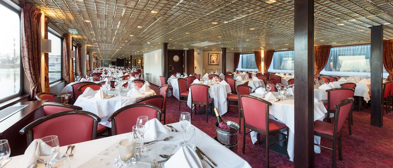 Alle måltider serveres i hovedspisesalen og gir en uformell, men elegant atmosfære.