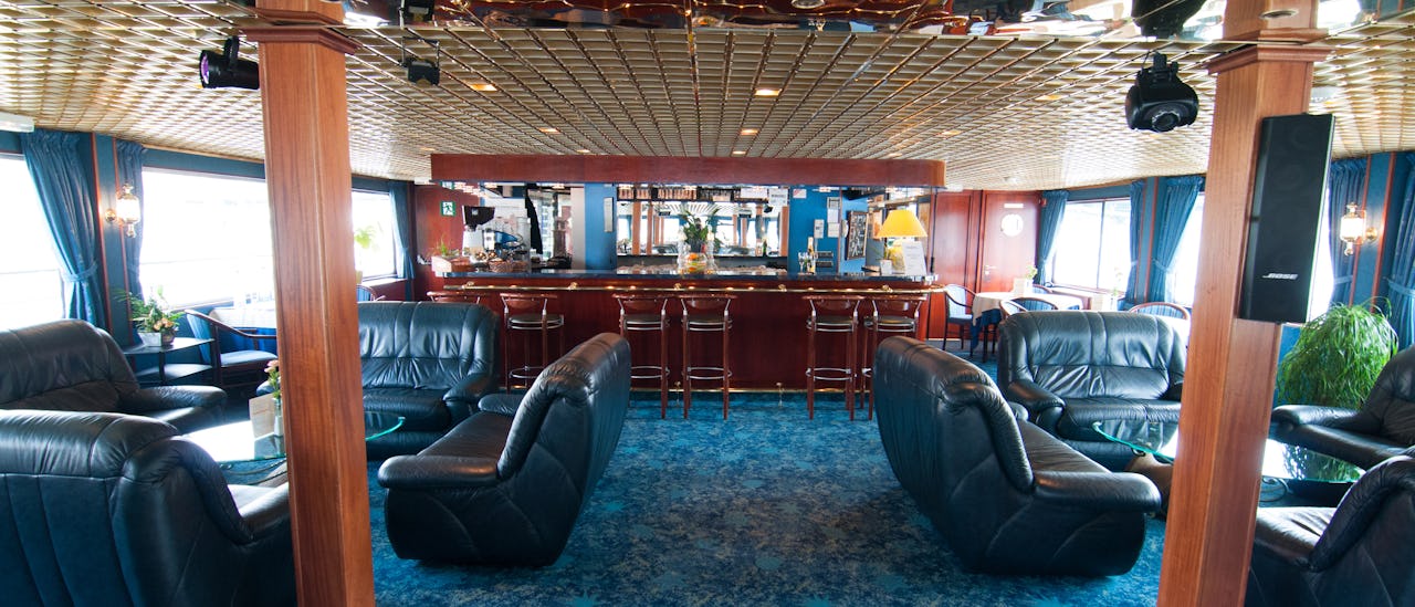 Salongen smakfullt innredet, ligger på forsiden av skipet og tilbyr panoramautsikt. Cocktailer og spill, dans og andre former for underholdning skjer her.