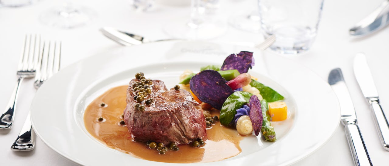 Alle måltider serveres i hovedspisesalen og gir en uformell, men elegant atmosfære. Menyen er for det meste fransk mat sammen med noen få lokalt inspirerte retter.