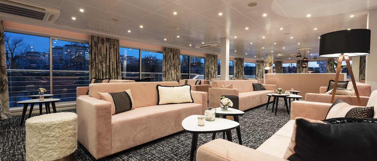 Slapp av, sosialiser og nyt naturen. Hoved-salongen tilbyr også panoramautsikt, cocktailer, spill og andre enkle aktiviteter.
