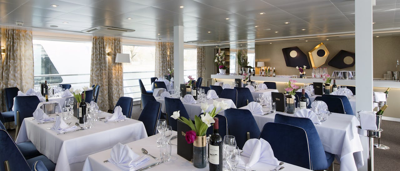 Alle måltider serveres i hovedspisesalen og gir en uformell, men elegant atmosfære.