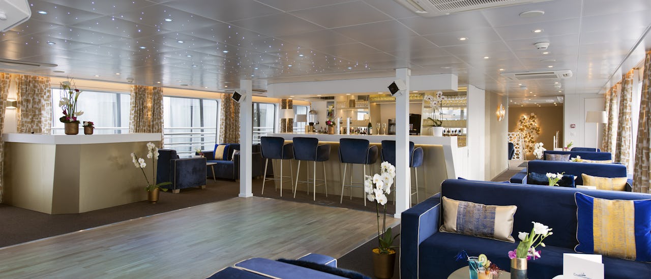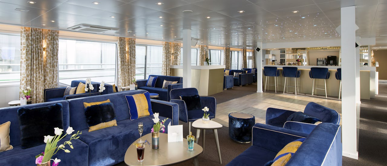 Salongen er smakfullt innredet, ligger på forsiden av skipet og tilbyr panoramautsikt. Cocktailer og spill, dans og andre former for underholdning skjer her.