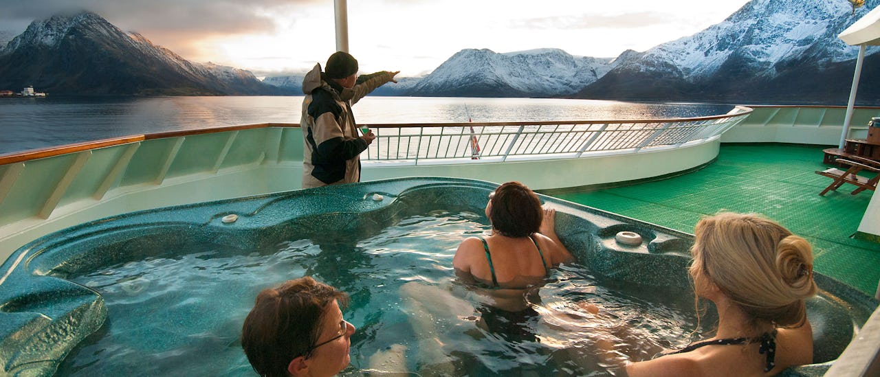 Slapp av i komfortable loungestoler med enestående utsikt over det uforglemmelige landskapet, eller ta et bad i utendørsjacuzzien. Nyt boblene i skipets to utendørs boblebad mens du beundrer utsikten over kysten. Hold deg aktiv på treningsrommet før du slapper av i dampbadstuen.