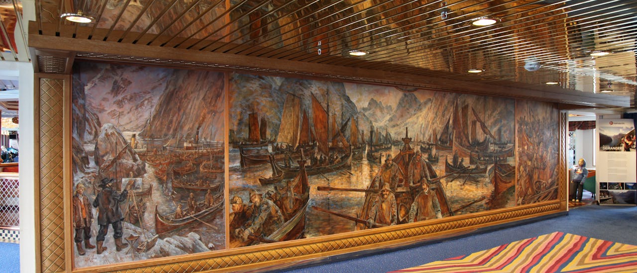 Norske kunstnere har skapt en unik og uttrykksfull atmosfære som passer med det maritime interiøret.