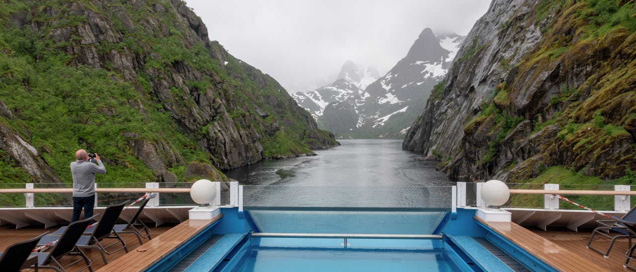 Slapp av i komfortable loungestoler med enestående utsikt over de vakre omgivelsene, eller un deg en spa-behandling om bord. Hos oss finner du alltid en fredelig oase hvor du kan nyte roen på reisen din.