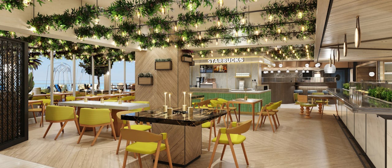 I hjertet av skipet er Penrose Atrium, et tre-dekks atrium. Designet av Miami-baserte Studio Dado