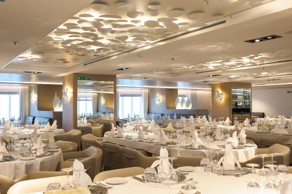 Opplev fantastisk fransk gourmetmat i hovedspisesalen Le Coromandel, et danseshow på teatret eller slapp av til en jazzsanger i hovedsalongen. Inspirert av en luksusyacht, er Le Soléal et eksklusivt, minimalistisk flytende boutique-resort med en sterk fransk arv.
