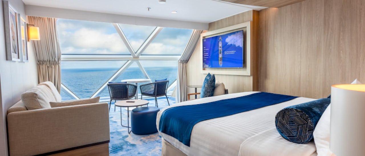 Følelsen av frihet og ro man får på cruise – din egen private balkong med uforstyrret havutsikt. Her kan du starte dagen med kaffe i soloppgang eller avslutte kvelden med solnedgang og bølgeskvulp. Komfort, privatliv og den eksklusive opplevelsen av å ha havet rett utenfor lugardøren.