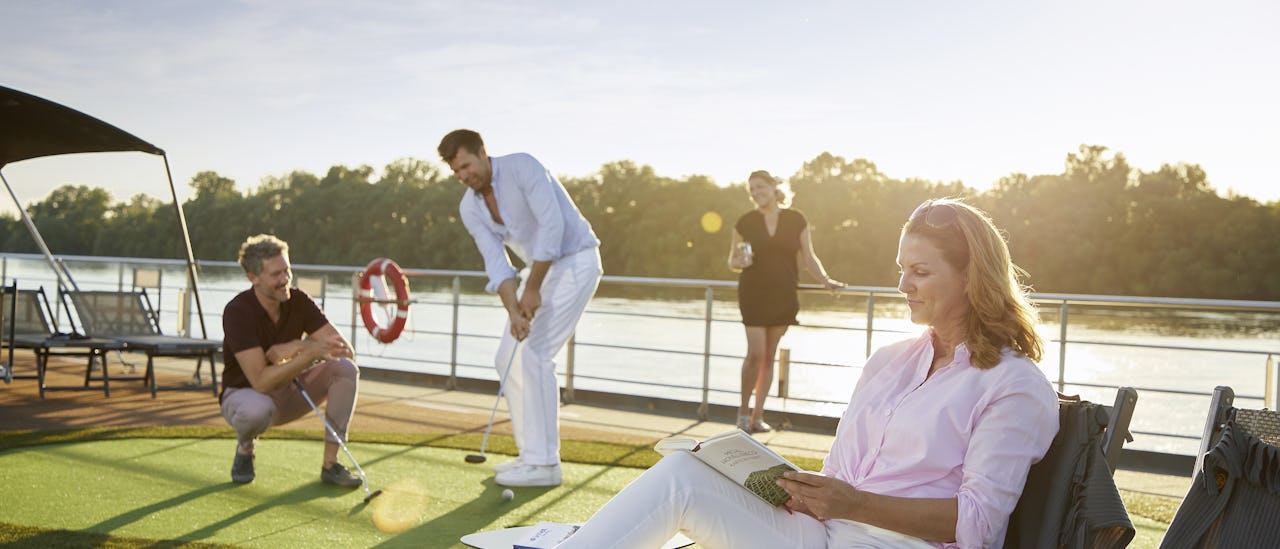 Utfordre deg selv og motstanderen din med et parti sjakk på soldekket. Etter en begivenhetsrik dag inviterer panoramasalongen deg til å nyte en drink med vakker utsikt.