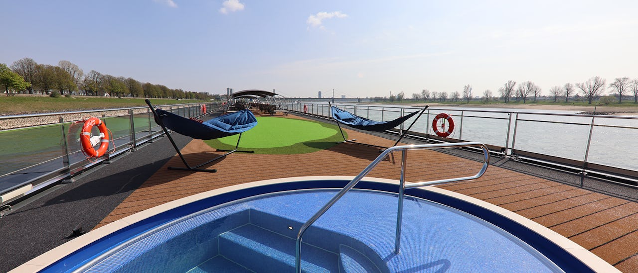 På soldekket kan du spille golf på puttinggreenen eller slappe av i det deilige varme boblebadet. Utforsk området rundt ved å ta en tur på en av skipets leiesykler.